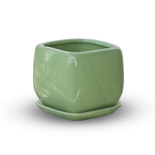 Glossy Ceramic Fatty & Chubby Planter With Bottom Plate | Green - 1102