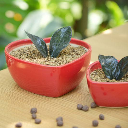 Heart-shaped Red Ceramic Pot | Heart Shape (Set of 2) - 1109
