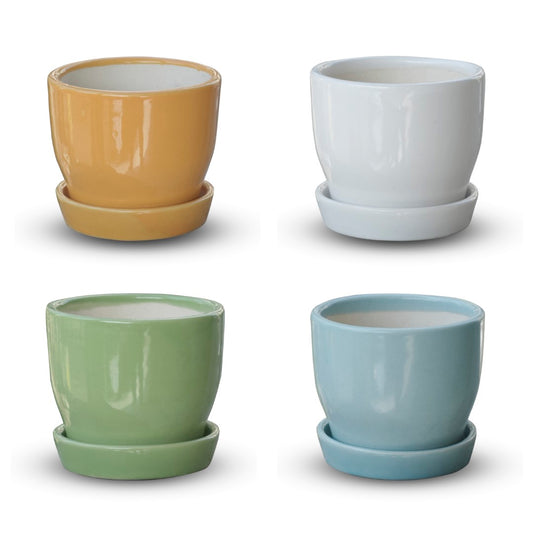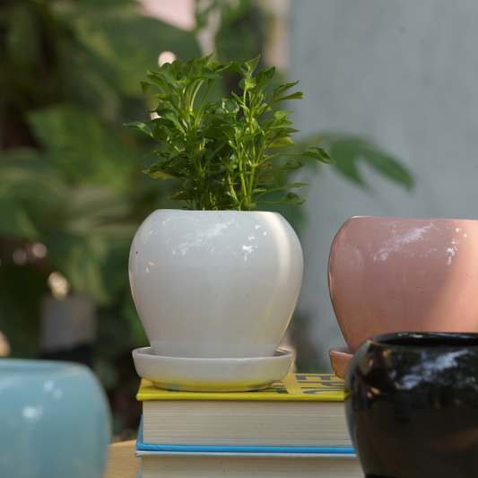 Glossy Ceramic Planter Pot With Bottom Plate | Multicolor - 1104