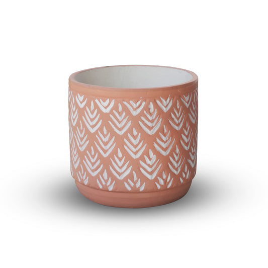 Terracotta Tapered Pattern Pot With Bottom Plate | Handcrafted With Love- 1207