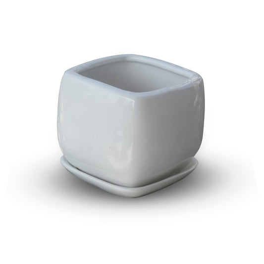 Glossy Ceramic Fatty & Chubby Planter With Bottom Plate | White - 1103