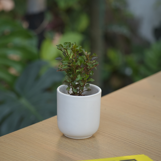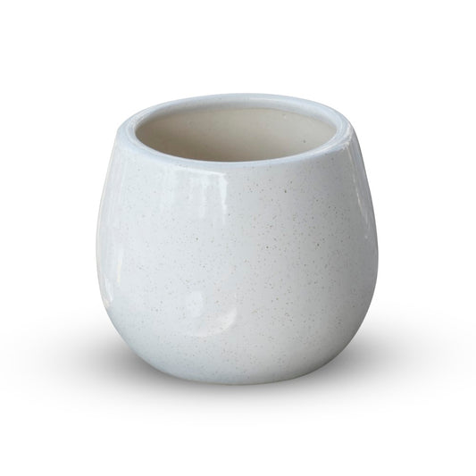 Glossy Ceramic Planter For Office Desk | White - 1107