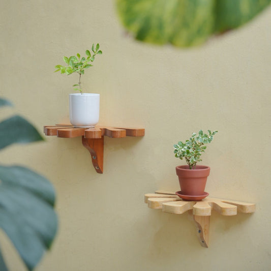 Decorative Wooden Handcrafted Daisy Shelf | Pack of 2 - 1302