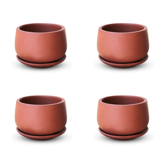 Terracotta Succulent Pot With Bottom Plate | Handcrafted With Love - 1203