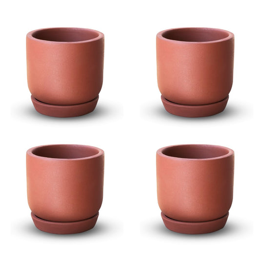 Terracotta Cylindrical Pot With Bottom Plate | Handcrafted With Love - 1204